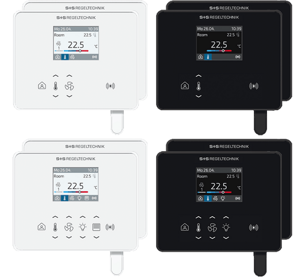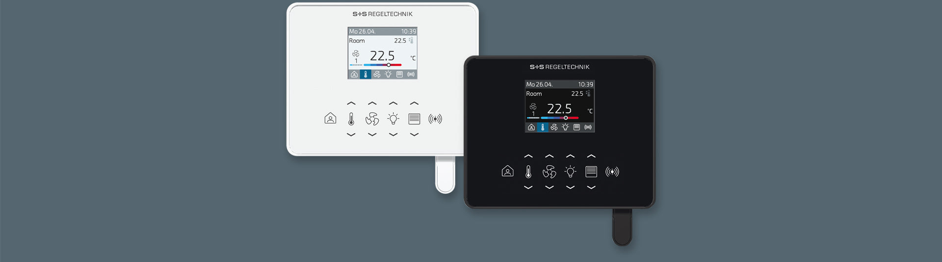 Entonces reúna todos estos valores y funciones en una unidad de control para influir directamente en los valores reales de su habitación, ya sea mediante la comunicación entre su unidad de control de habitaciones y el sistema de gestión del edificio o con dispositivos de funcionamiento independiente.