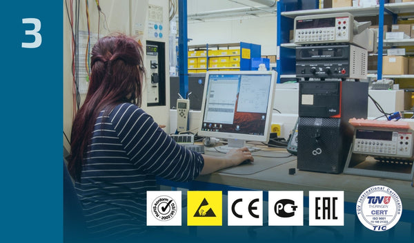 Nos medimos con los estándares más exigentes y establecemos constantemente nuevos puntos de referencia. Nuestra gestión de calidad integral está certificada conforme a la norma DIN EN ISO 9001:2015. Cumplimos la normativa europea y alemana sobre aparatos eléctricos y electrónicos. En nuestro centro de pruebas, comprobamos nuestros productos en las condiciones más duras para garantizar un funcionamiento impecable, robustez y durabilidad.