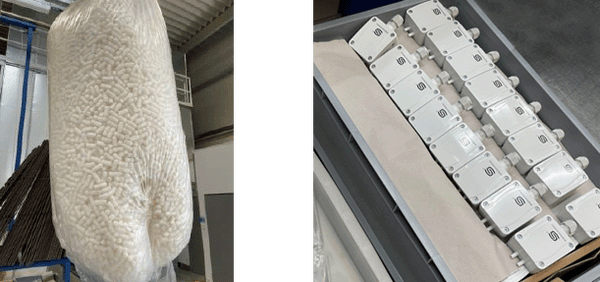 S+S confía al 100% en material de embalaje ecológico y reutilizable. Sólo utilizamos cajas de cartón recicladas y material de relleno biodegradable. Al utilizar chips de almidón de maíz en lugar de chips de plástico para los envases, reducimos 900 kg de plástico al año. También formamos parte de un sistema de envasado rodante: la mayoría de nuestros proveedores entregan sus productos en cajas grandes reutilizables en lugar de envases individuales perjudiciales para el clima.