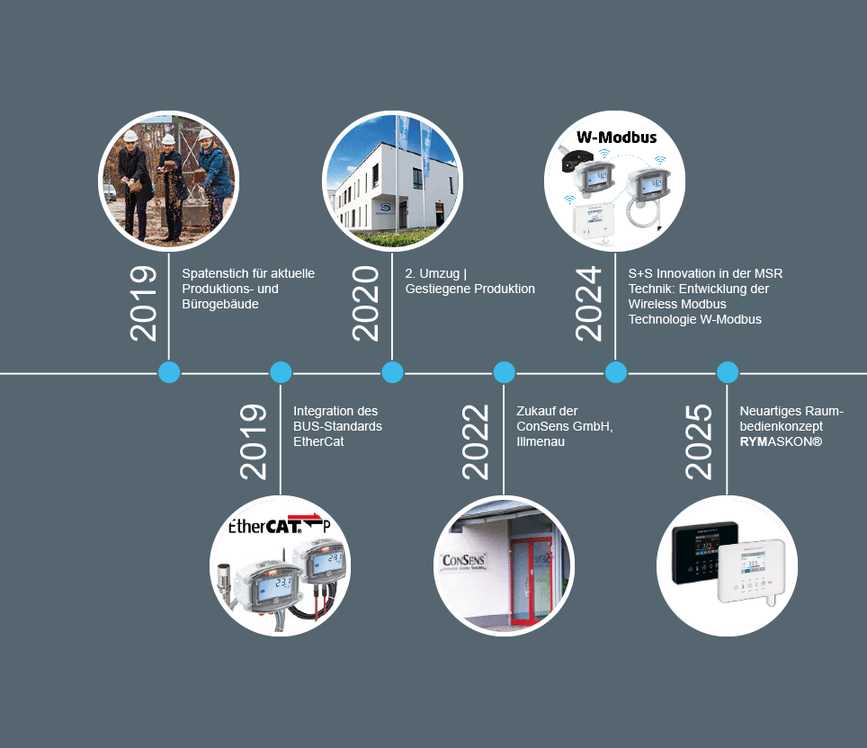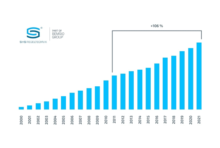 En 2021, S+S se trasladó a un nuevo edificio con el último sistema de gestión de edificios, el más alto nivel de aislamiento térmico e iluminación exclusivamente con LED. Gracias a la más moderna automatización de edificios (Modbus/KNX) para la climatización y el control de persianas, así como a una bomba de calor para calefacción con un rendimiento superior al 99%, contribuimos activamente al uso sostenible de la energía. Con estas medidas, somos pioneros en el funcionamiento de edificios comparables y nos situamos un 20% por debajo del estricto límite de requisitos de energía primaria según la Ordenanza Alemana de Ahorro de Energía (EnEV).