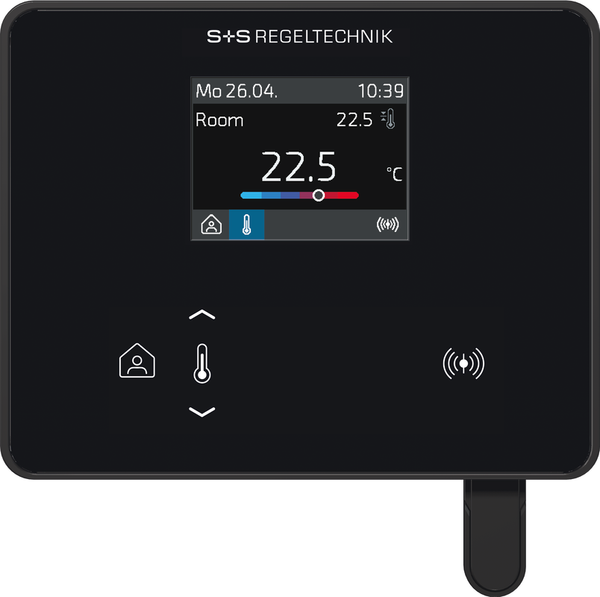 Las unidades de control de estancias RYMASKON® 1000 (interfaz) se utilizan para controlar la temperatura, los ventiladores, la protección solar (venecianas exteriores, persianas venecianas) o la luz (con función de regulación). Las unidades de control de estancias ponen los valores de consigna a disposición del BMS a través del Modbus convencional por cable o a través del W-Modbus inalámbrico por radio. La pantalla visual es una pantalla TFT de 2", el manejo se realiza mediante botones capacitivos (teclas táctiles).