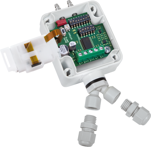 Los sensores de presión calibrados y compactos del PREMSERIE ASGARD 121x - Modbus con conexión Modbus están equipados opcionalmente con una pantalla y se utilizan para medir presiones de aire positivas, negativas o diferenciales. El elemento de medición piezoresistivo está compensado por temperatura y garantiza una alta fiabilidad y precisión. Los transmisores de presión disponen de un botón para el ajuste manual del punto cero y un offset ajustable. Los sensores de presión se utilizan en salas blancas, tecnología médica y de filtrado, en conductos de ventilación y aire acondicionado, en cabinas de pulverización y cocinas comerciales, para la supervisión de filtros y la medición de niveles o para controlar convertidores de frecuencia. Los medios de medición del transmisor de presión son aire limpio (sin condensación) o medios gaseosos, no agresivos y no inflamables. Los sensores de presión diferencial se suministran con juego de conexiones incluido. ASD-06 (manguera de conexión de 2 m, dos boquillas de conexión de presión, tornillos).