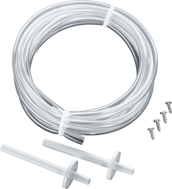 Juego de conexión compuesto por 2 boquillas de conexión (rectas) de plástico ABS, 2 m de manguera de PVC blando y 4 tornillos autorroscantes