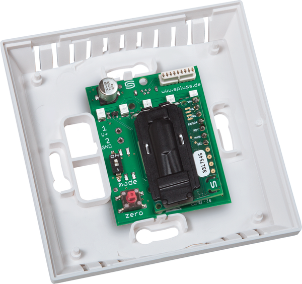 Transductor de medición de CO2 exento de mantenimiento como sensor del clima ambiental AERASGARD® RCO2-AS xx con indicación de semáforo y señal acústica, autocalibrado, en una atractiva carcasa de plástico, para determinar el contenido de CO2 del aire ambiental (0...3000 ppm). El transductor de medición convierte la magnitud medida en una señal normalizada, que se visualiza inmediatamente en cinco niveles mediante LED de colores (indicación semafórica). Además, suena una señal acústica cuando se alcanzan los niveles de advertencia (desconectable mediante interruptor DIP).