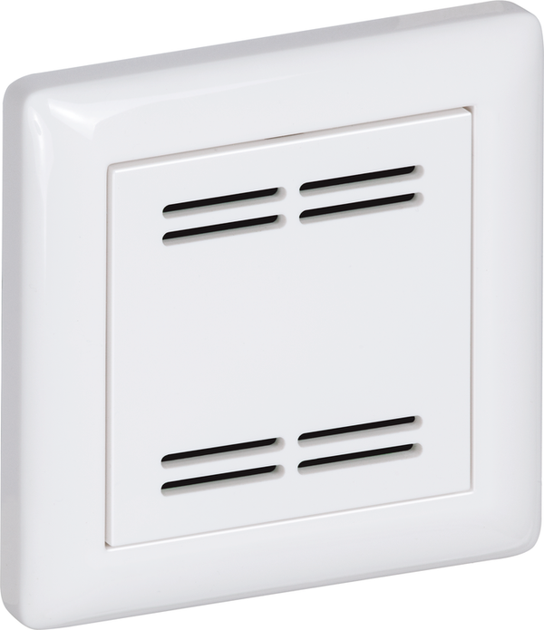 Sensor de calidad del aire sin mantenimiento AERASGARD FSLQ con salida activa, calibración automática, en carcasa empotrada, para determinar la calidad del aire (0...100 % COV). El transductor de medición convierte las magnitudes medidas en una señal normalizada de 0 -10 V. El sensor empotrado se instala en programas de interruptores de superficie de alta calidad, preferentemente de Gira, Berker, Merten, Jung, Siemens o Busch-Jaeger (mediante un adaptador empotrado), ya sea individualmente o en combinación con interruptores de luz, enchufes, etc.