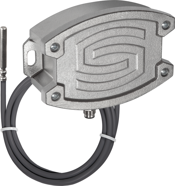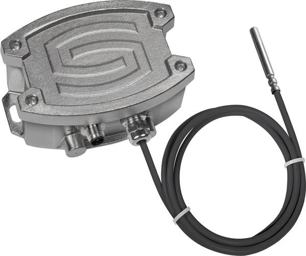Transmisor de temperatura calibrable THERMASGARD HFTM - VA con sensor de manguito, ocho rangos de medición conmutables, salida continua, carcasa robusta de acero inoxidable V4A, con prensaestopas o conector M12 según DIN EN 61076-2-101.