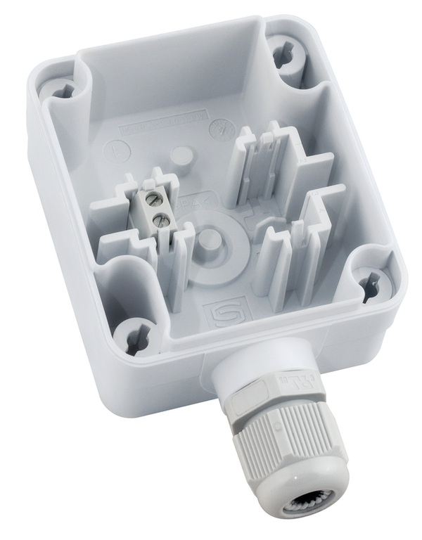 Se utiliza para registrar la temperatura exterior, la temperatura en zonas húmedas, por ejemplo, como sensor exterior, sensor meteorológico, para montaje en paredes exteriores, en cámaras frigoríficas e invernaderos, en naves, en zonas industriales y en la agricultura. En zonas exteriores, el sensor de temperatura se instala preferentemente en el lado norte o en un lugar protegido. Con luz solar directa, debe utilizarse el parasol WS 01 o WS 04.