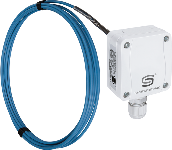 con salida pasiva, en carcasa de plástico resistente a los golpes con tornillos de bloqueo rápido, con varilla de sensor flexible (totalmente activa), tubo de protección de cobre con revestimiento de plástico y muelle antitorsión, incl. brida de montaje.