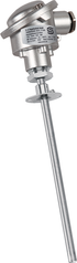 Termómetro de resistencia/sensor de temperatura de gases de combustión THERMASGARD RGTF 1 con salida pasiva, opcionalmente con prensaestopas o conector M12 según DIN EN 61076-2-101, con cabezal de conexión de aluminio y tubo protector recto, incl. brida de montaje.