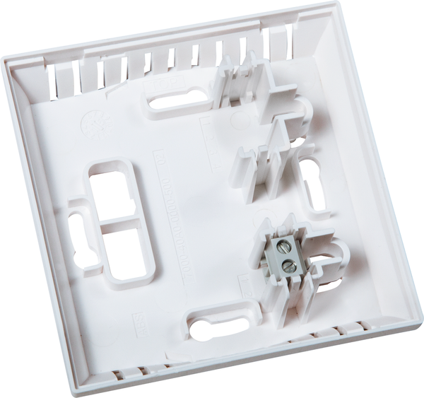 Sensor de temperatura ambiente THERMASGARD RTF 1 con salida pasiva, en una atractiva carcasa de plástico con tapa a presión, parte inferior con fijación de 4 orificios, para montaje en cajas empotradas instaladas vertical u horizontalmente, con punto de rotura predeterminado para conexión en superficie, o con robusta carcasa de acero inoxidable (parte superior e inferior de acero inoxidable, tapa a rosca) para aplicaciones a prueba de vandalismo, por ejemplo, en escuelas, cuarteles y edificios públicos. El sensor de temperatura ambiente se utiliza para registrar/visualizar la temperatura en habitaciones cerradas y secas, en pisos, cines, supermercados, almacenes, oficinas y locales comerciales.